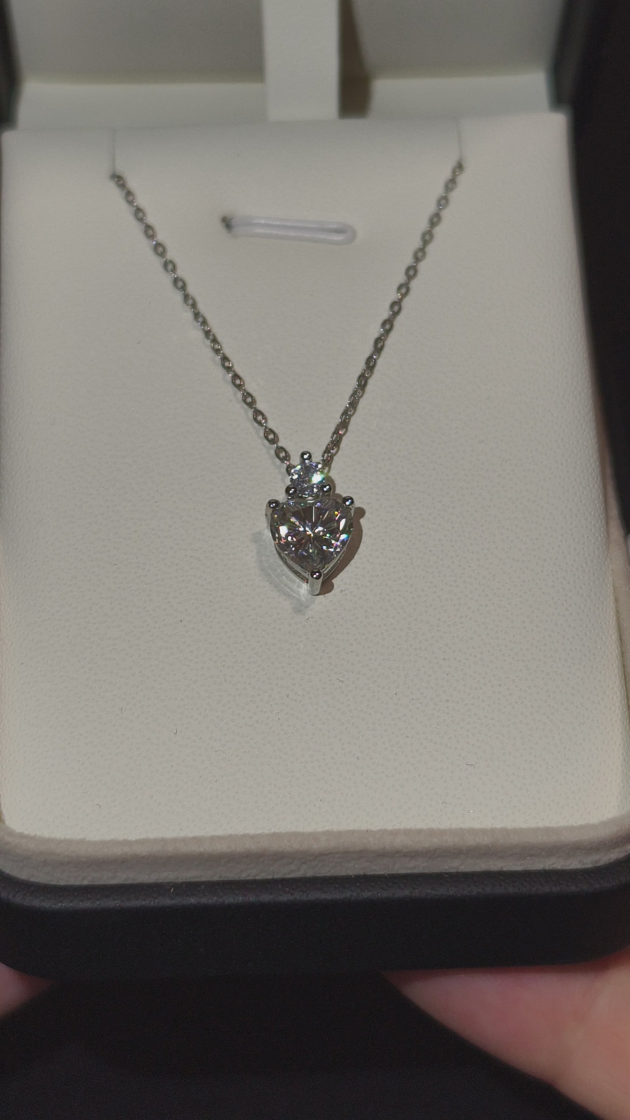 Lumière Heartbeat ogrlica iz istoimene kolekcije otelotvoruje ritam unutrašnje svetlosti — trenutak u kojem se sofisticiranost i emocija susreću. Srcoliki Moissanite kamen od 8 mm, upotpunjen manjim akcentnim draguljem, stvara iluziju pokreta i života. Svaki pokret vrata reflektuje novi talas svetlosti, kao da ogrlica diše zajedno s tobom — ritmom tvog samopouzdanja i ženstvenosti.
