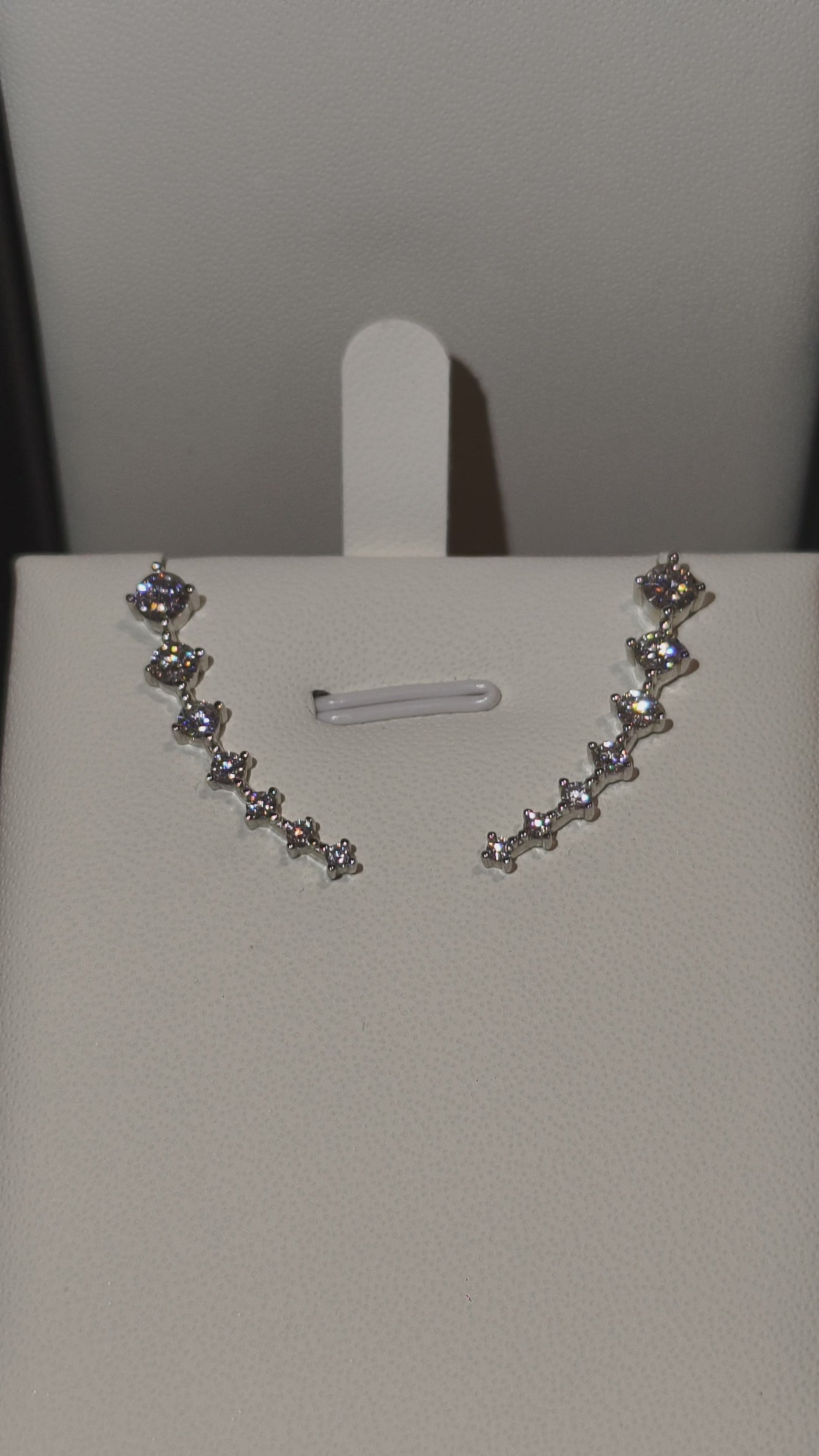 No Witnesses minđuše nisu tu da se pokažu — one postoje da se primete. Sa ukupno 14 okruglih Moissanite kamena različitih veličina (od 1.8 mm do 4 mm), postavljenih u savršenom nizu, stvaraju iluziju svetlosnog preliva koji klizi uz liniju uha. Ove minđuše ne vise; elegantno prate oblik ušne školjke, pružajući efekat podignutog, modernog sjaja koji se ne zaboravlja.