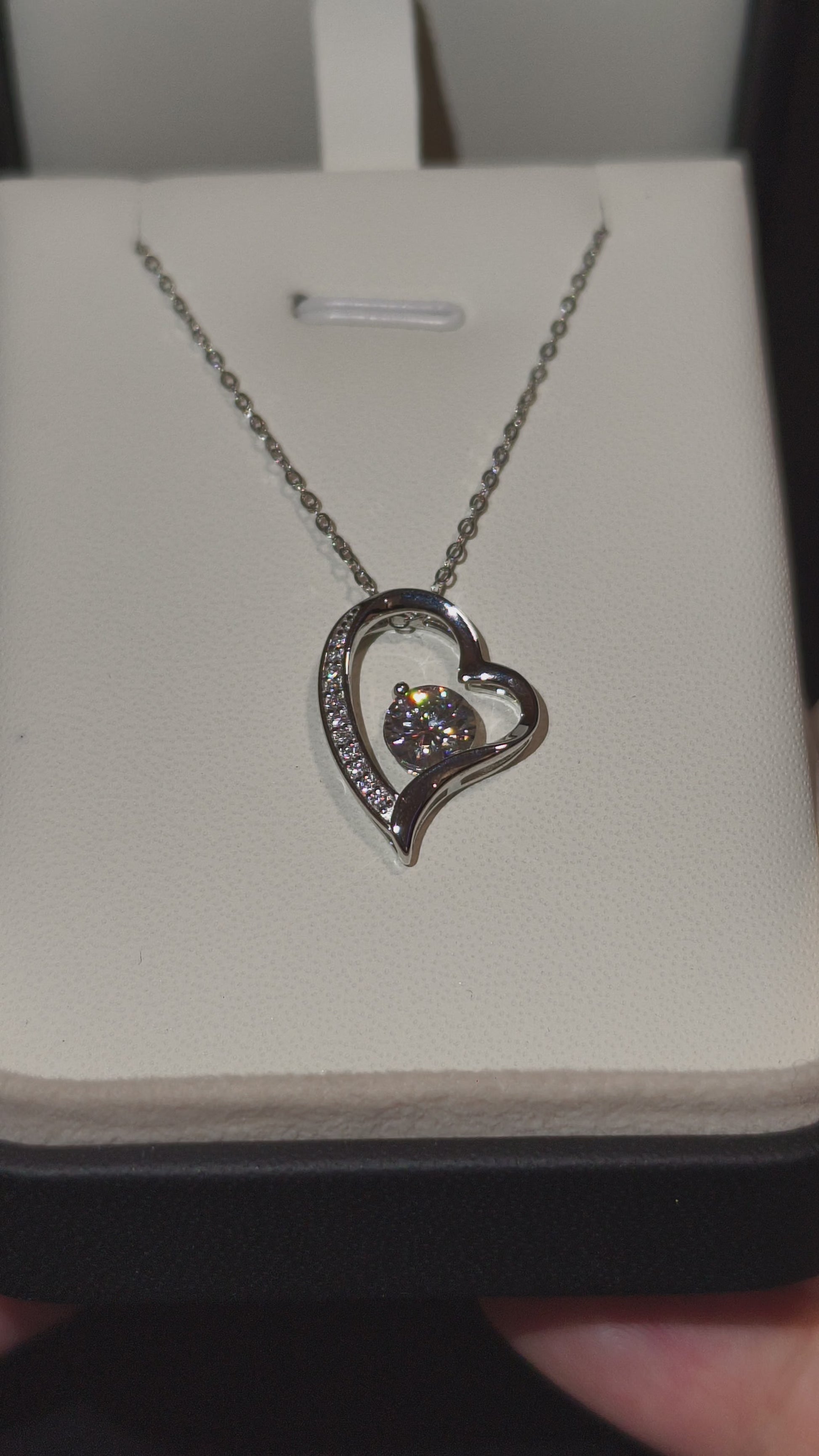 · Dizajn: privezak u obliku srca sa lebdećim centralnim kamenom i nizom manjih Moissanite kamena