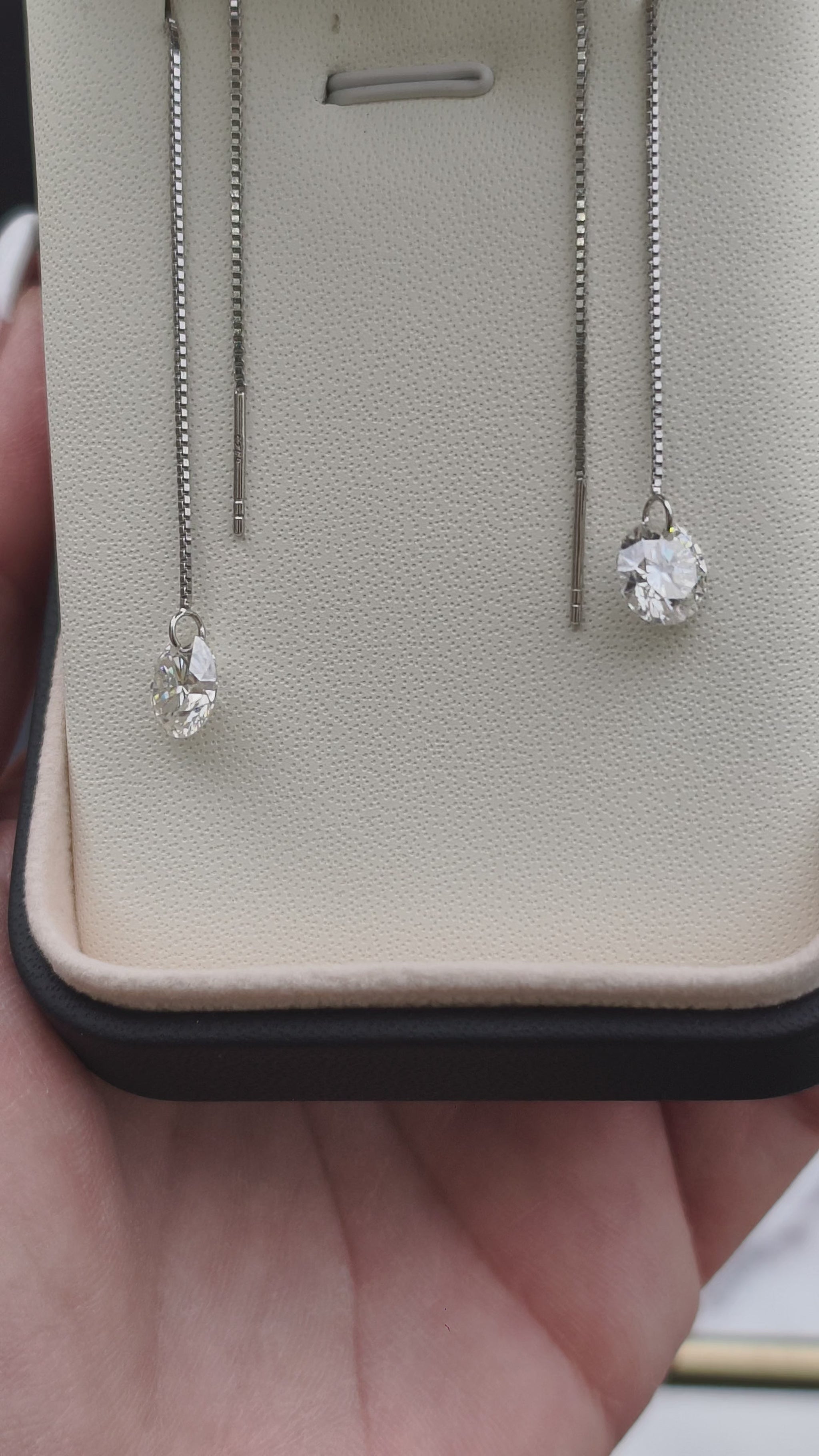 Opium Drops nisu samo minđuše – one su oda hipnotičkoj eleganciji i treperavom sjaju. Svaka minđuša nosi jedan 8 mm Moissanite dragulj (≈ 2 ct), slobodno viseći, tako da se kamen nežno ljulja pri svakom pokretu i hvata svetlost iz svakog ugla. Dugačak lančić od srebra 925 dužine 11,8 cm može se provući kroz uvo tako da dužinu prilagodiš po želji — kamen može biti bliže uhu ili spušten dublje, stvarajući potpuno drugačiji vizuelni efekat.