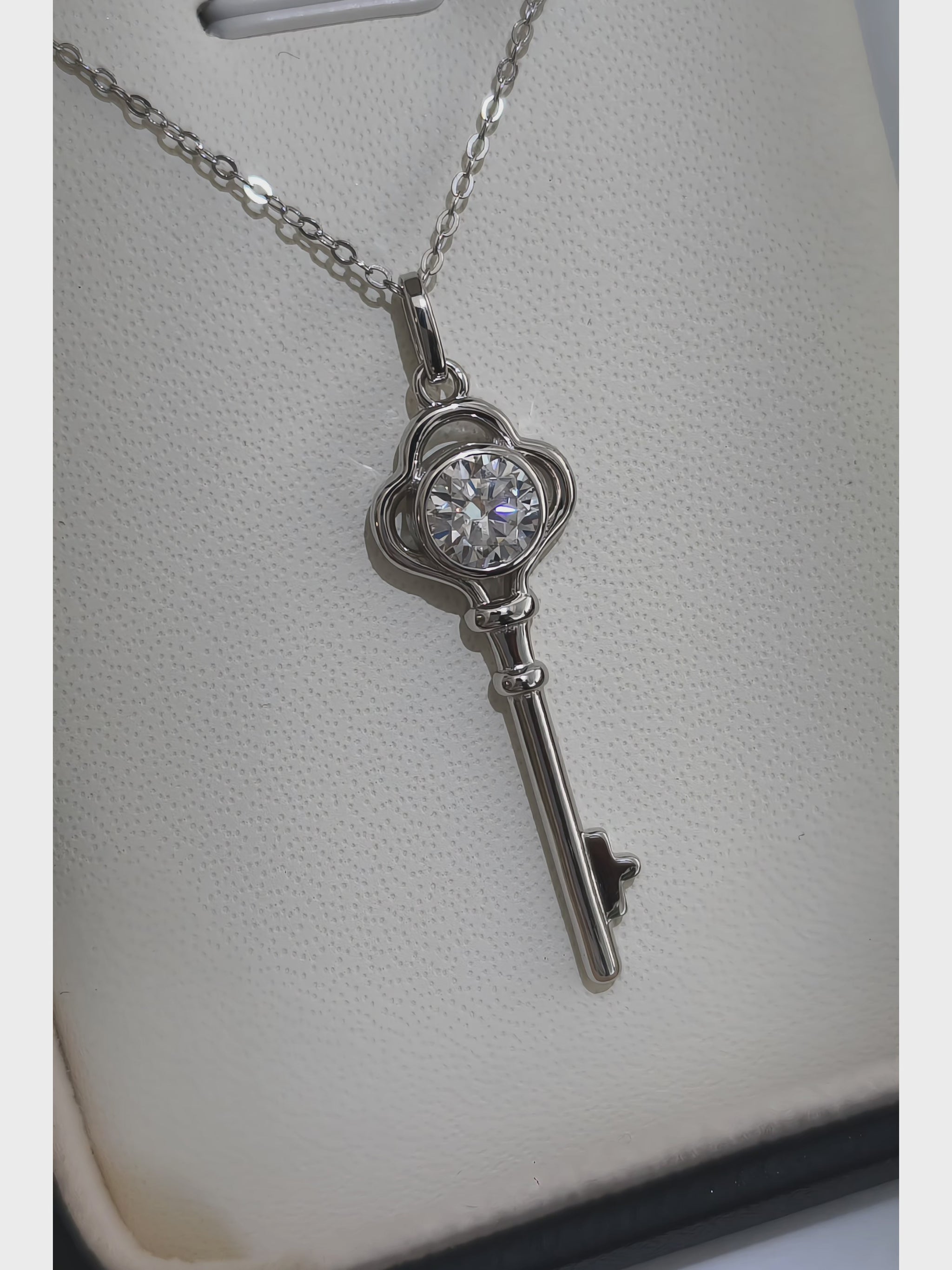 Sa centralnim Moissanite kamenom od 1 ct, ovaj komad spaja klasičnu profinjenost sa modernom simbolikom — ključa koji otključava ono što je u ženi najautentičnije.